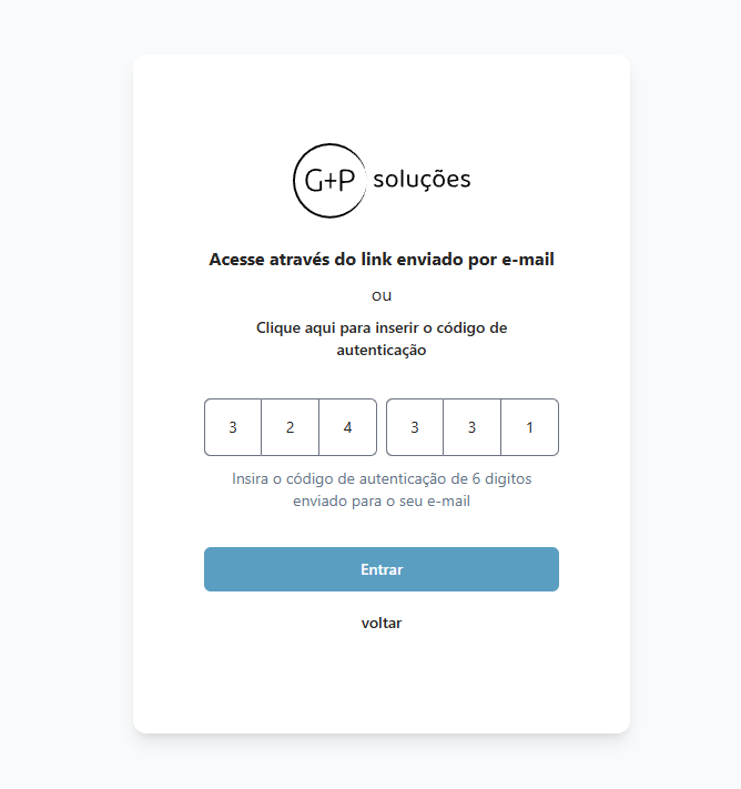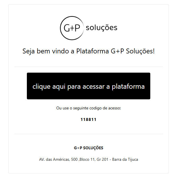 Você receberá um e-mail com instruções para acessar o Portal G+P. No e-mail, é possível autenticar de duas formas: